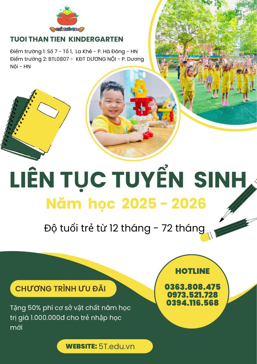 Chào mừng bạn đến Trường mầm non Tuổi Thần Tiên. Với triết lý giáo dục: NUÔI DẠY TRẺ CÓ THÁI ĐỘ BIẾT ƠN, TỰ TIN VÀ HỢP TÁC!