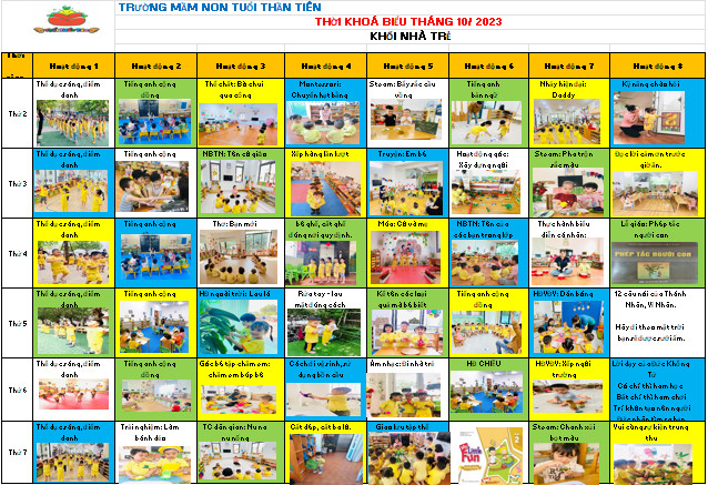 Thời khoá biểu khối nhà trẻ - Tháng 10 năm 2023