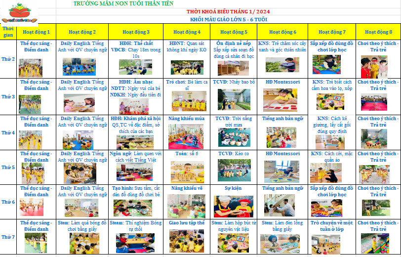 Thời khoá biểu tháng 1/ 2024 - Khối mẫu lớn ( 5 - 6 tuổi )