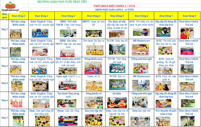 Thời khoá biếu tháng 1/ 2025 - khối mẫu giáo lớn ( 5 - 6 tuổi )