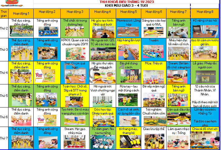 Thời khoá biểu tháng 11/ 2023 - khối mẫu giáo bé ( 3 - 4 tuổi ).
