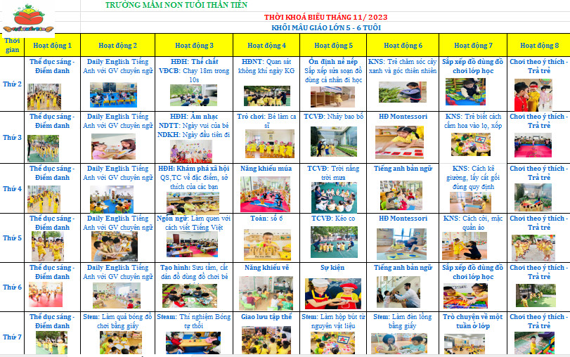 Thời khoá biểu tháng 11/ 2023 - Khối mẫu giáo lớn ( 5 - 6 tuổi )