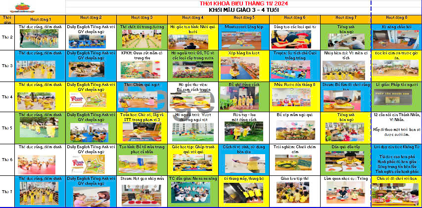 Thời khoá biếu tháng 11/ 2024 - khối mẫu giáo bé ( 3 - 4 tuổi )