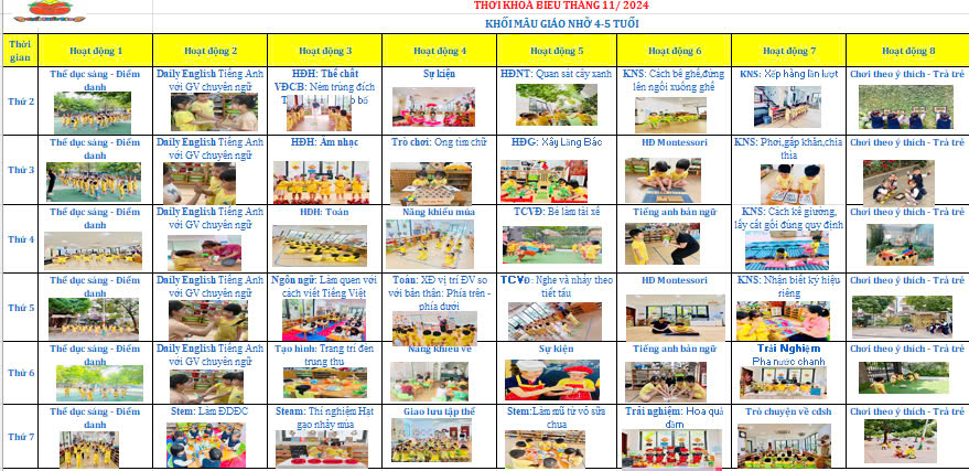 Thời khoá biếu tháng 11/ 2024 - khối mẫu giáo nhỡ ( 4 - 5 tuổi )
