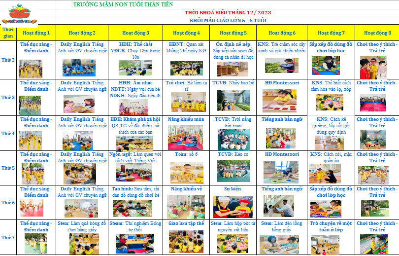 Thời khoá biểu tháng 12/ 2023 khối mẫu giáo lớn 5 - 6 tuổi