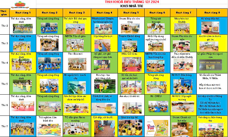 Thời khoá biếu tháng 12/ 2024 - khối nhà trẻ