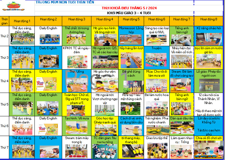 Thời khoá biểu tháng 5/ 2024 - Khối mẫu giáo bé ( 3 - 4 tuổi )