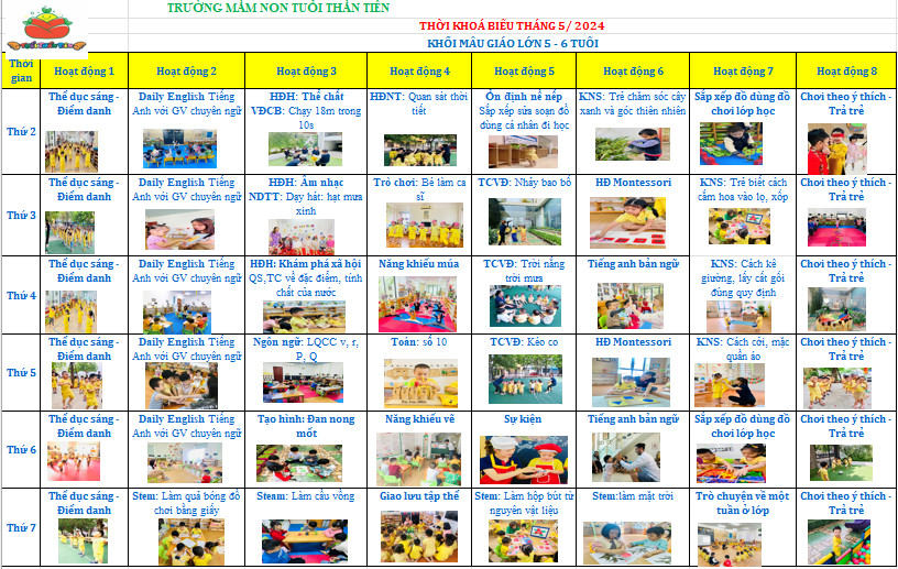 Thời khoá biểu tháng 5/ 2024 - Khối mẫu giáo lớn ( 5 - 6 tuổi )