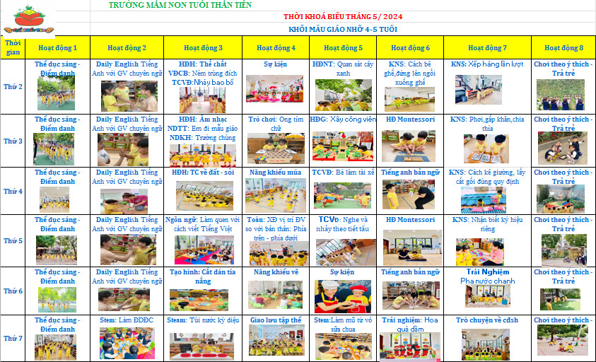Thời khoá biểu tháng 5/ 2024 - Khối mẫu giáo nhỡ ( 4 - 5 tuổi )