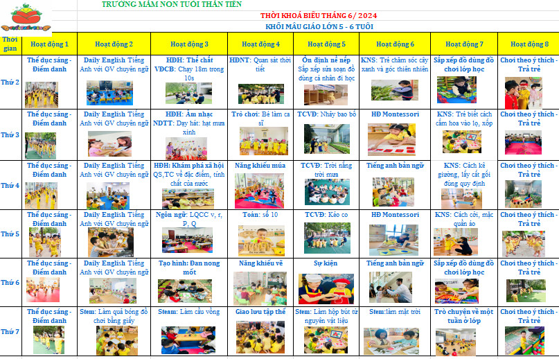 Thời khoá biếu tháng 6/ 2024 - khối mẫu giáo lớn ( 5 - 6 tuổi )