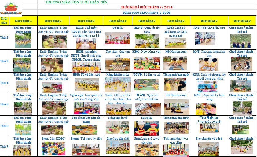 Thời khoá biếu tháng 7/ 2024 - khối mẫu giáo lớn ( 5 - 6 tuổi )
