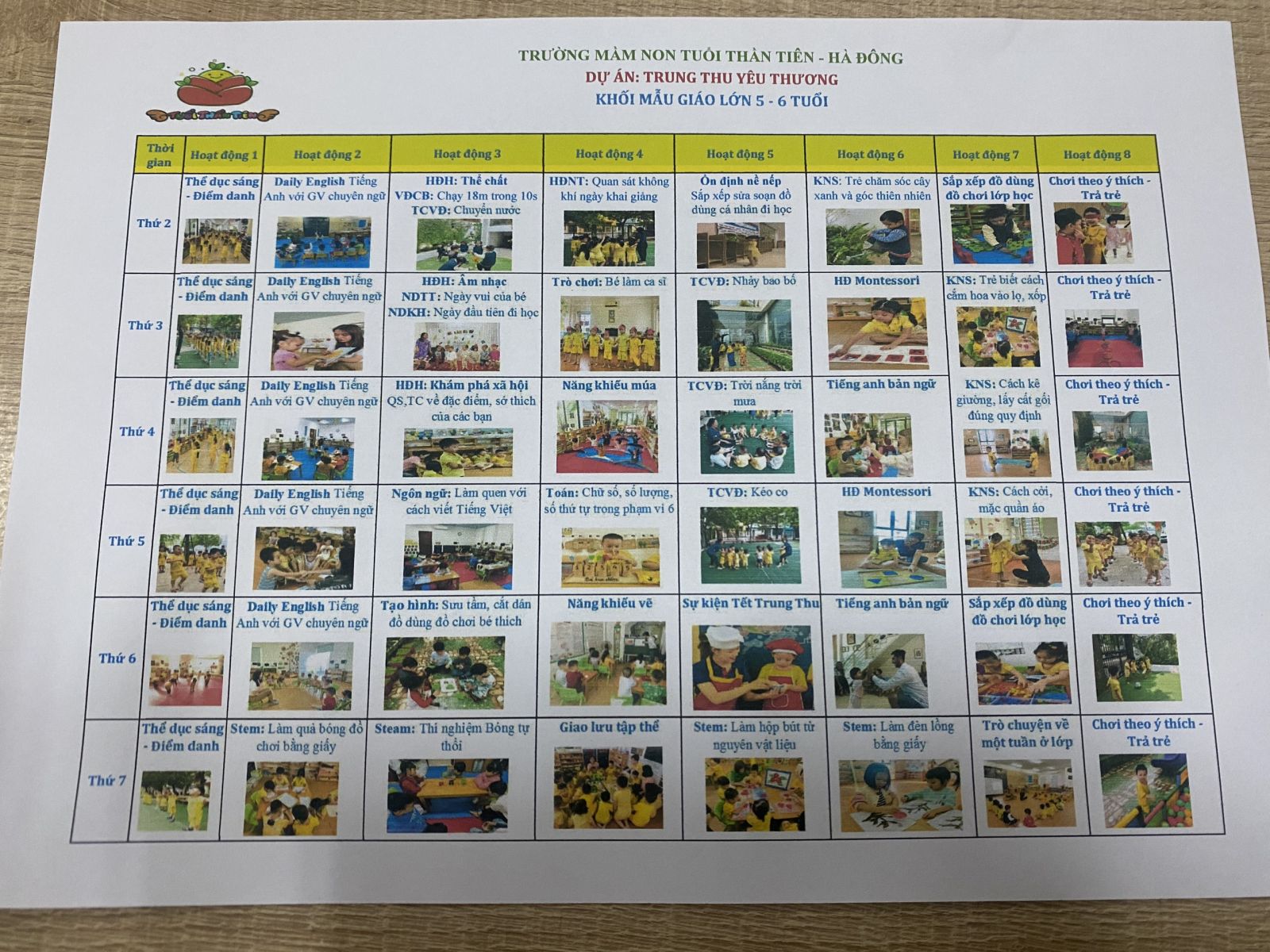 Thời khoá biểu tháng 9/ 2023 khối mẫu giáo lớn ( 5 - 6 tuổi )