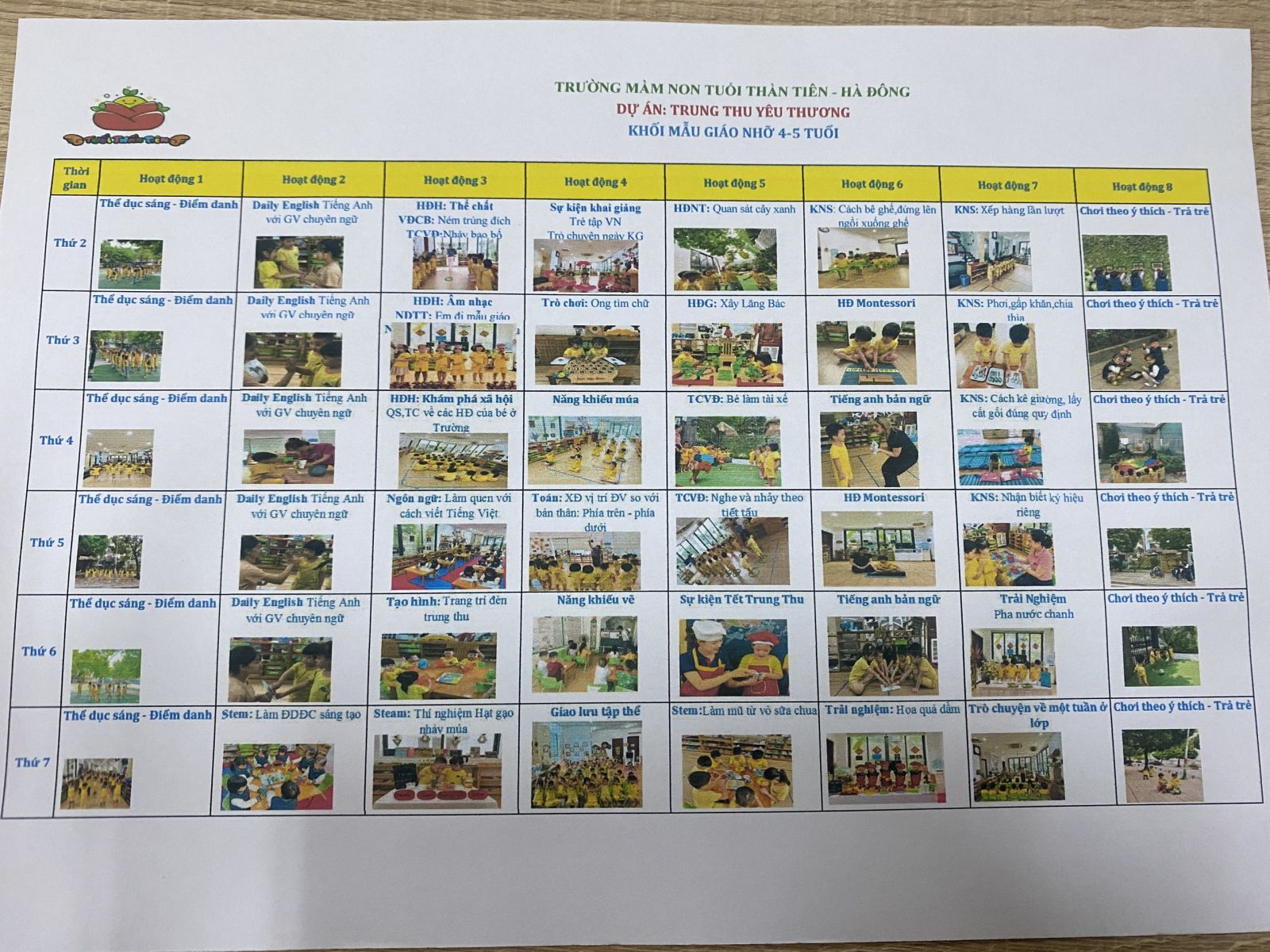 Thời khoá biểu tháng 9/ 2023 khối mẫu giáo nhỡ ( 4 - 5 tuổi )