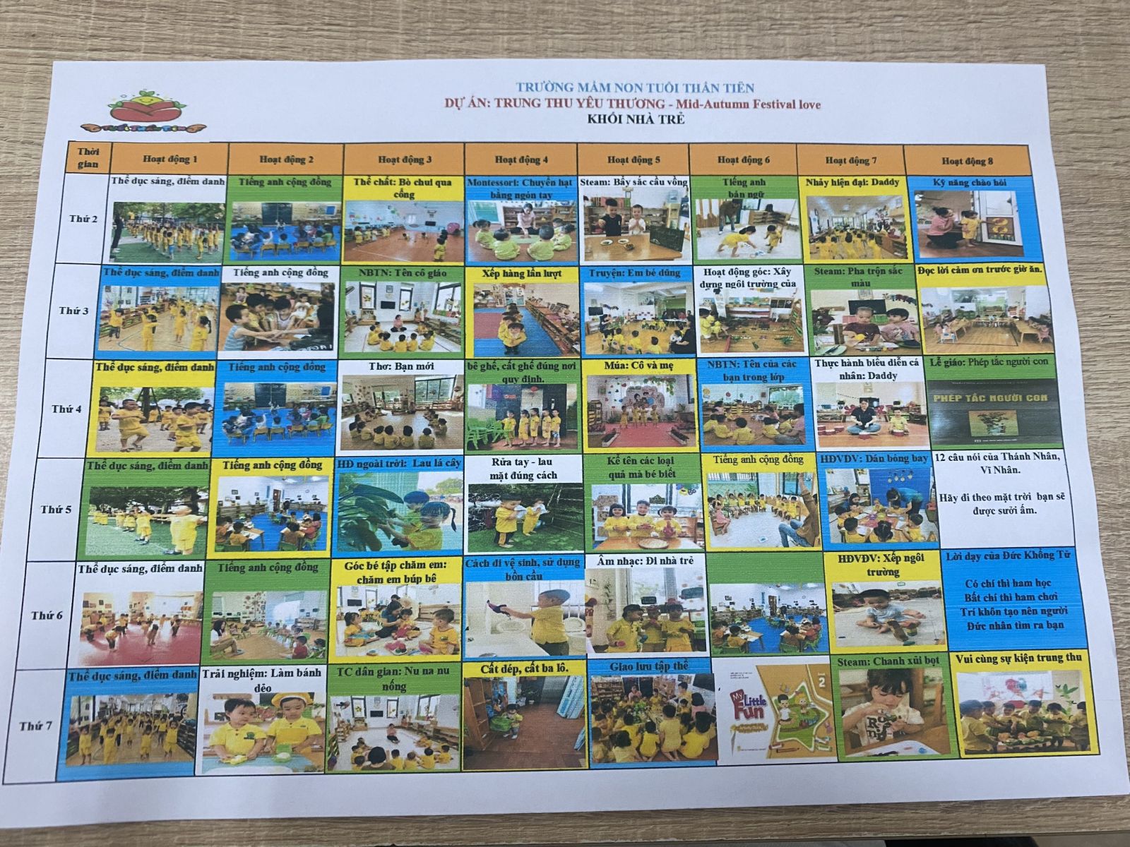 Thời khoá biểu tháng 9/ 2023 khối nhà trẻ