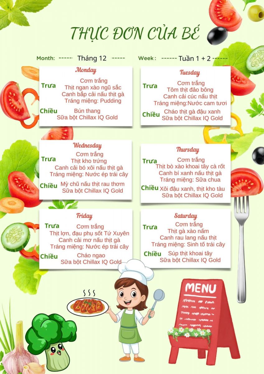 Thực đơn tháng 12/2026