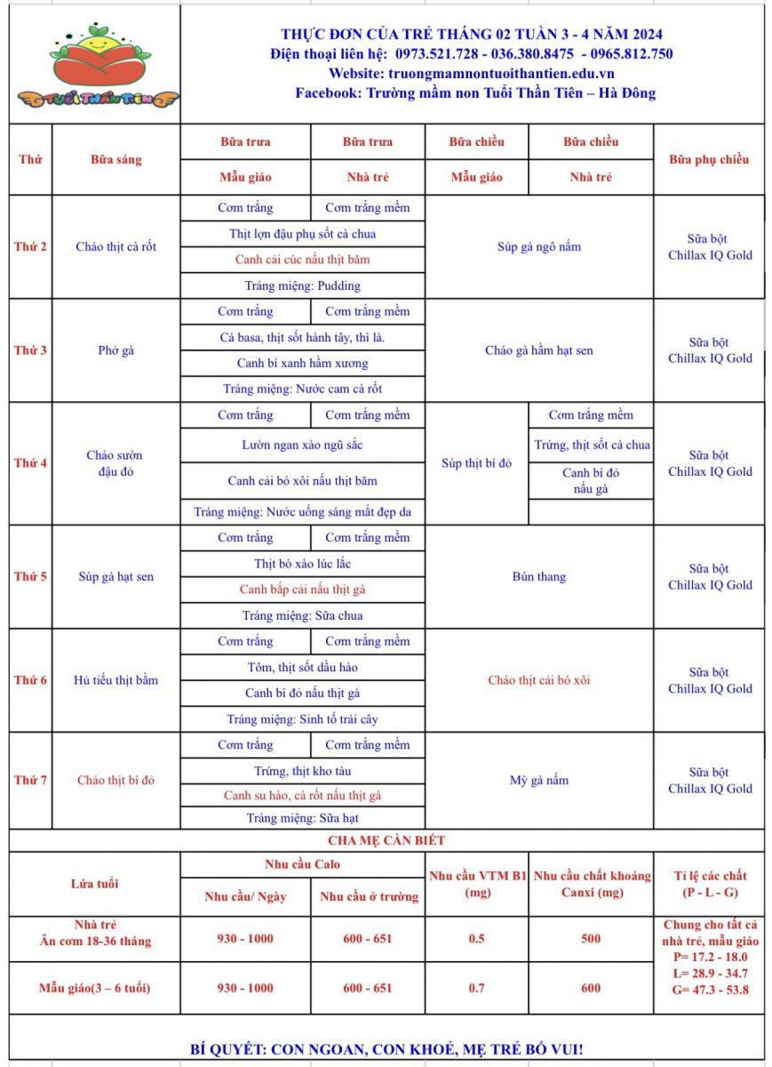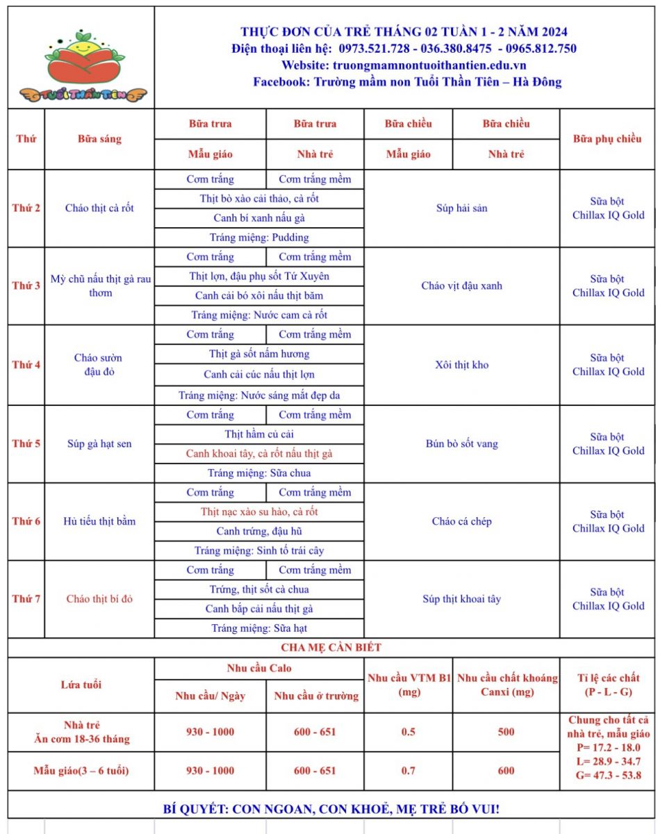 Thực đơn tháng 2/2024