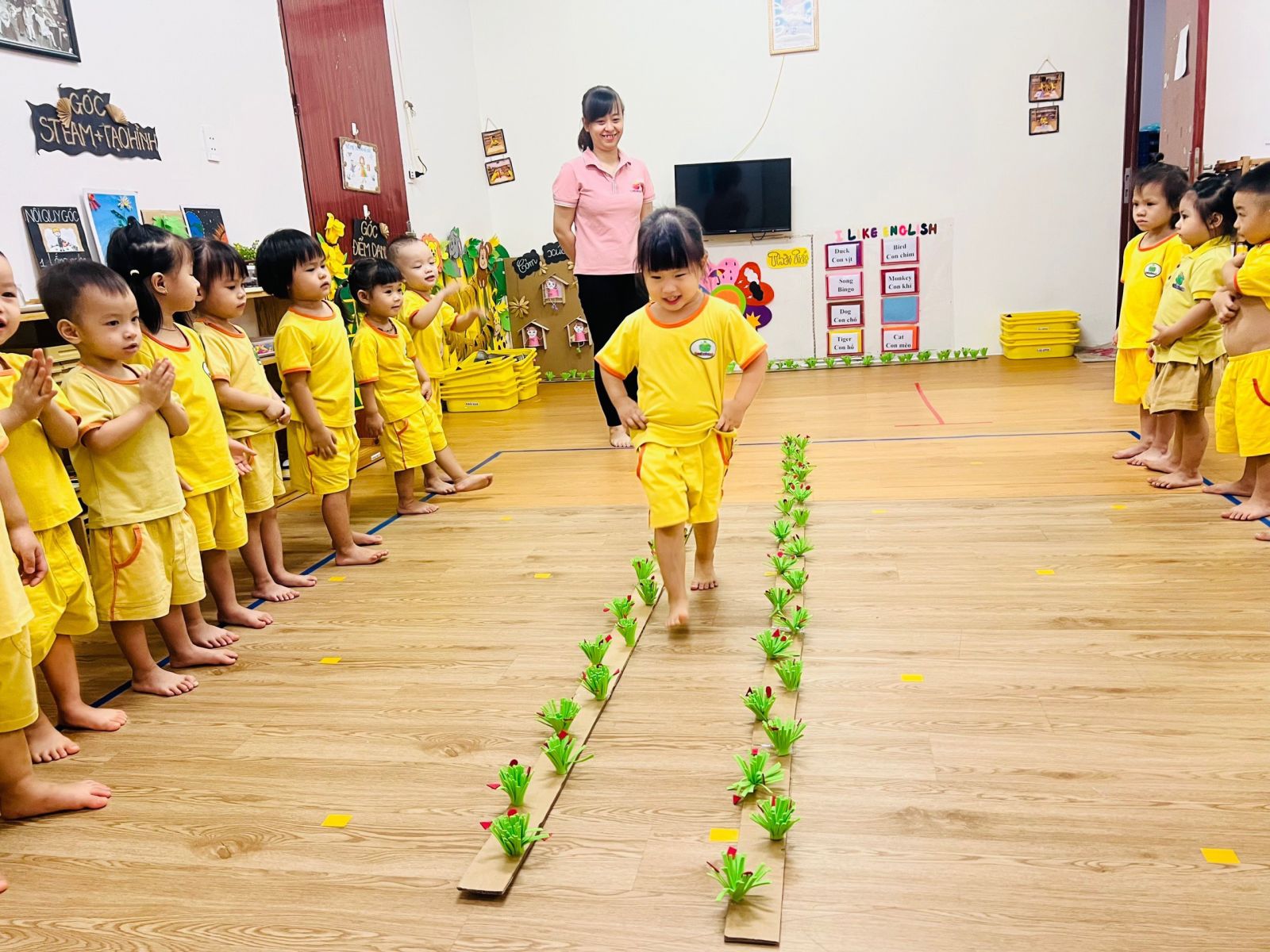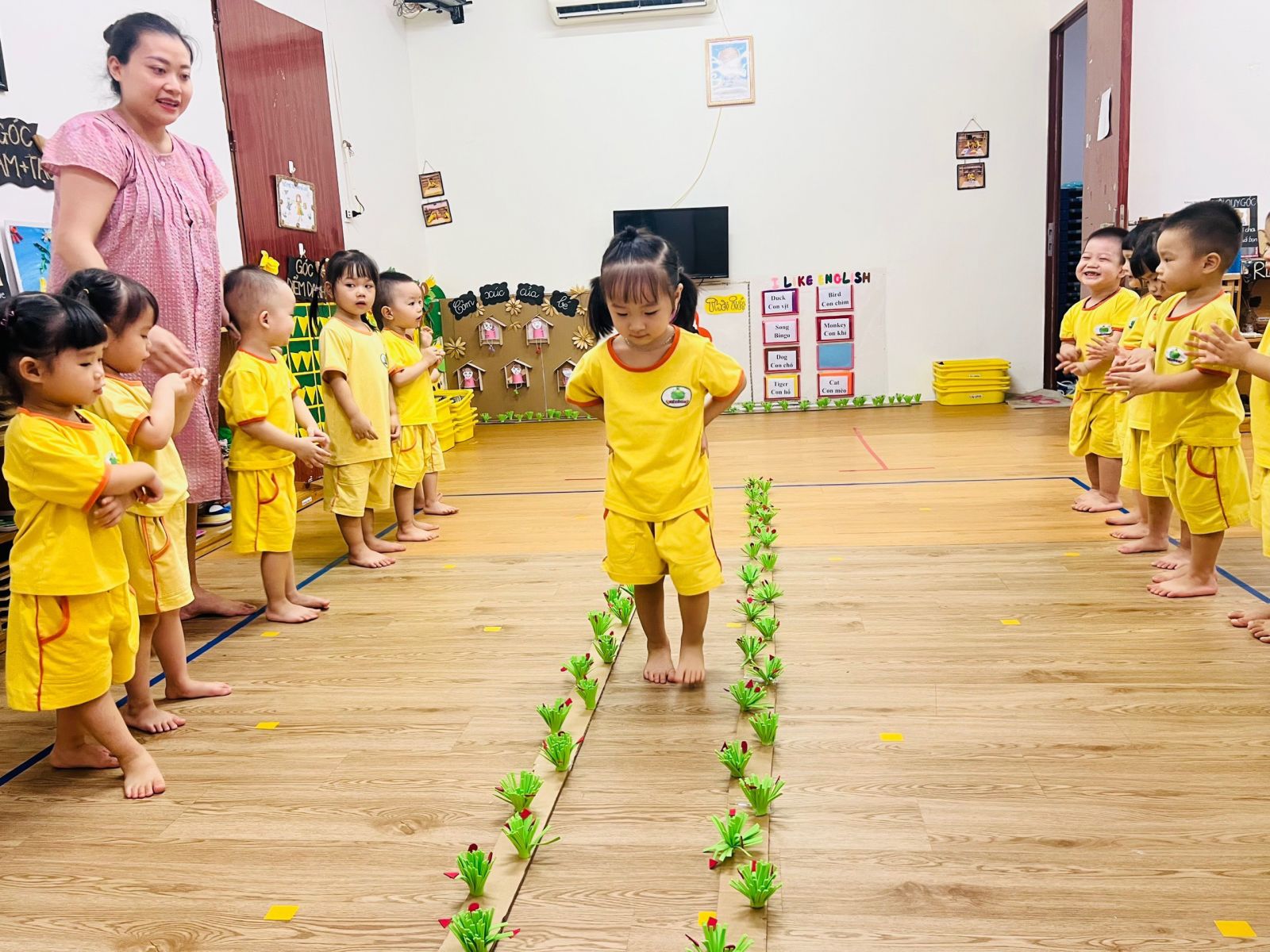 Hoạt động phát triển thể chất: Đi trong đường hẹp (khối mẫu giáo bé)